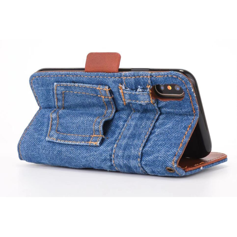 手触りのいいデニムがポイントの手帳型 iPhoneカバー。