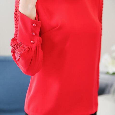 袖レーストップス スリムシフォンシャツ ラウンドネック ダンス ウェア 黒