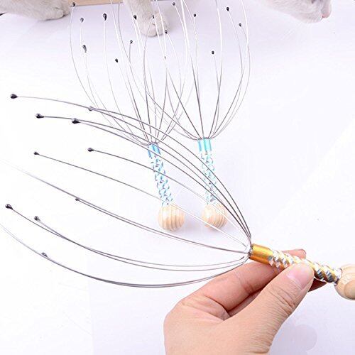・マッサージ器の足部分の端には丸いマッサージヘッドがコーティングされており頭皮に刺激を与えます。