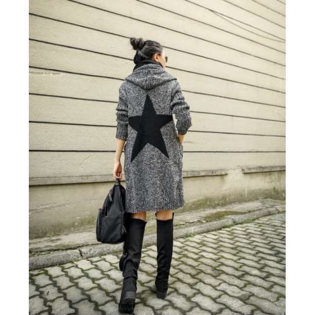 定番のロングカーディガンです(^^)背中の星柄が大きく可愛いです 前は開いて着るタイプの物でボタンなどはなく、カーディガンっぽいです♪ 厚手なので、中は薄くしこれからの時期〜冬、春まで着れます(^^)☆ サイズはフリーサイズになります。 カラー ダークグレー ライトグレーも出品しております。