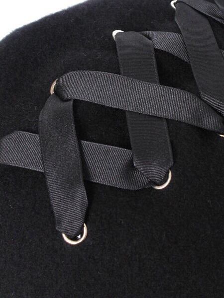 リボンがキュートで可愛い(*´∀`)♪ レースアップベレー帽❤️ サテン調のレースアップリボンの、とても可愛らしいデザインになります。 カラー ブラック サイズ 約58~60cm位 素材 ウール 実寸はメジャー採寸の為、若干の誤差が生じる場合があります。 色合いはモニター環境により若干の誤差が出ます。