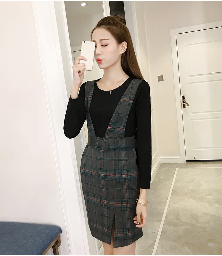 トレンドの グレンチェック柄、可愛いベルト付きひざ丈のジャンパー スカート(カットソー付)の登場です!!