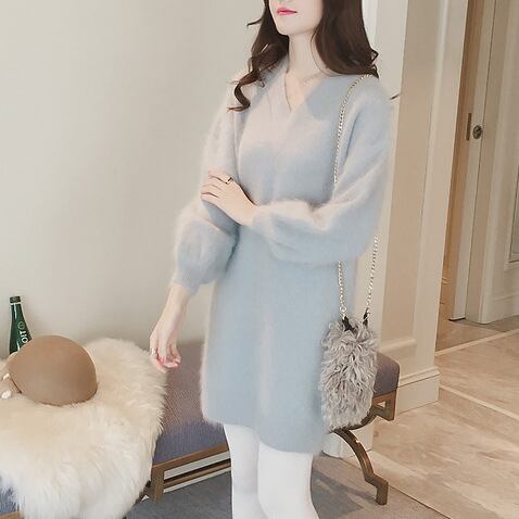 モヘアパフスリーブ Vネックセーター ワンピース とても女性らしく着こなせます^ ^ フリーサイズ 着丈86cm バスト96cm 肩幅42cm 袖丈52cm (大きめサイズ) ※お使いのモニター環境や、撮影場所やイメージにより 実際の商品と色味が若干異なる場合がございます ※製品により多少の誤差が生じる場合がございます。