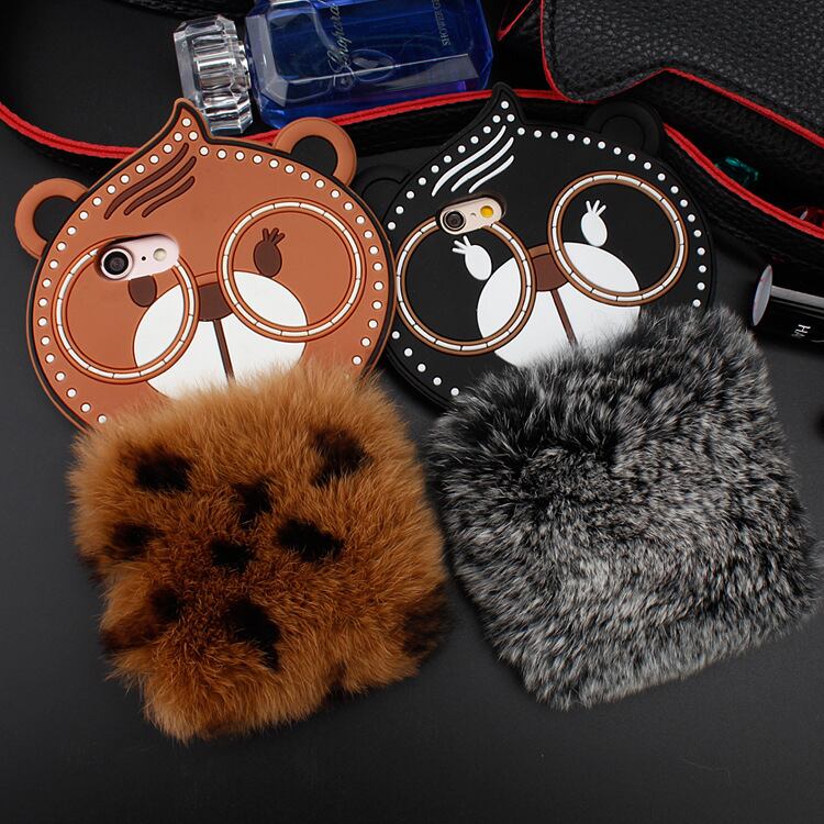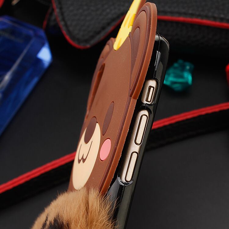 iPhoneケース くまさん 茶 ファー iPhone 8/ 7