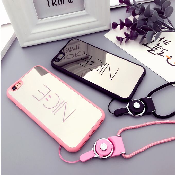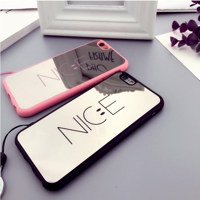 ミラーに「NICE」の文字が刻まれたiPhoneケースです。