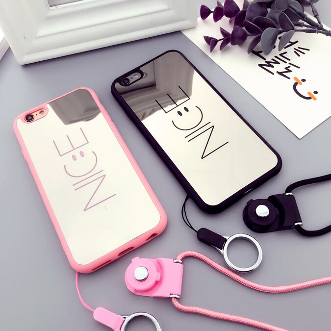 ミラーに「NICE」の文字が刻まれたiPhoneケースです。